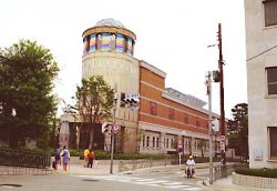 地上2階地下2階建ての記念館。屋上の『ガラスの地球を救え』(遺作)をモチーフとした、ガラスの地球がイカス!!