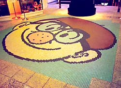 正面ホールの床は手塚先生の似顔絵モザイク。恐れ多くて転げ回りたいぜッ!!