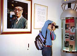 ![]() 取材中の筆者。おお! 背中から神様の暖かい目が!! |
